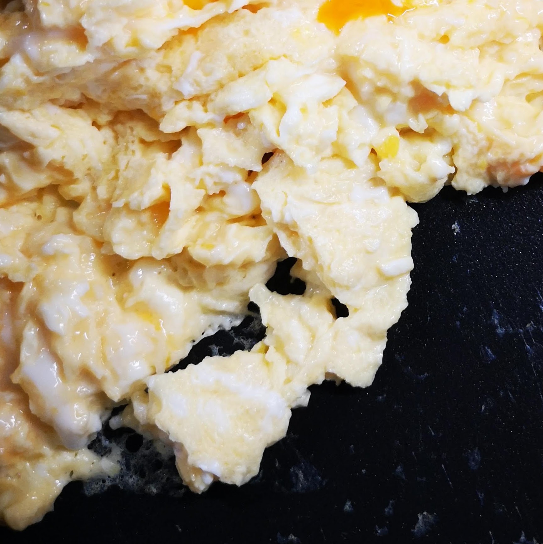 Вижте как подробно в картата с рецепти, но накратко: ключът е в добавянето на отделени жълтъци в края на готвенето. Остатъчната топлина ги сготвя леко, без да ги пресушава, а резултатът е сочна текстура. Това е прост, но ефективен трик, който променя цялото ястие – без мляко, без сметана или друга добавка, само яйца.