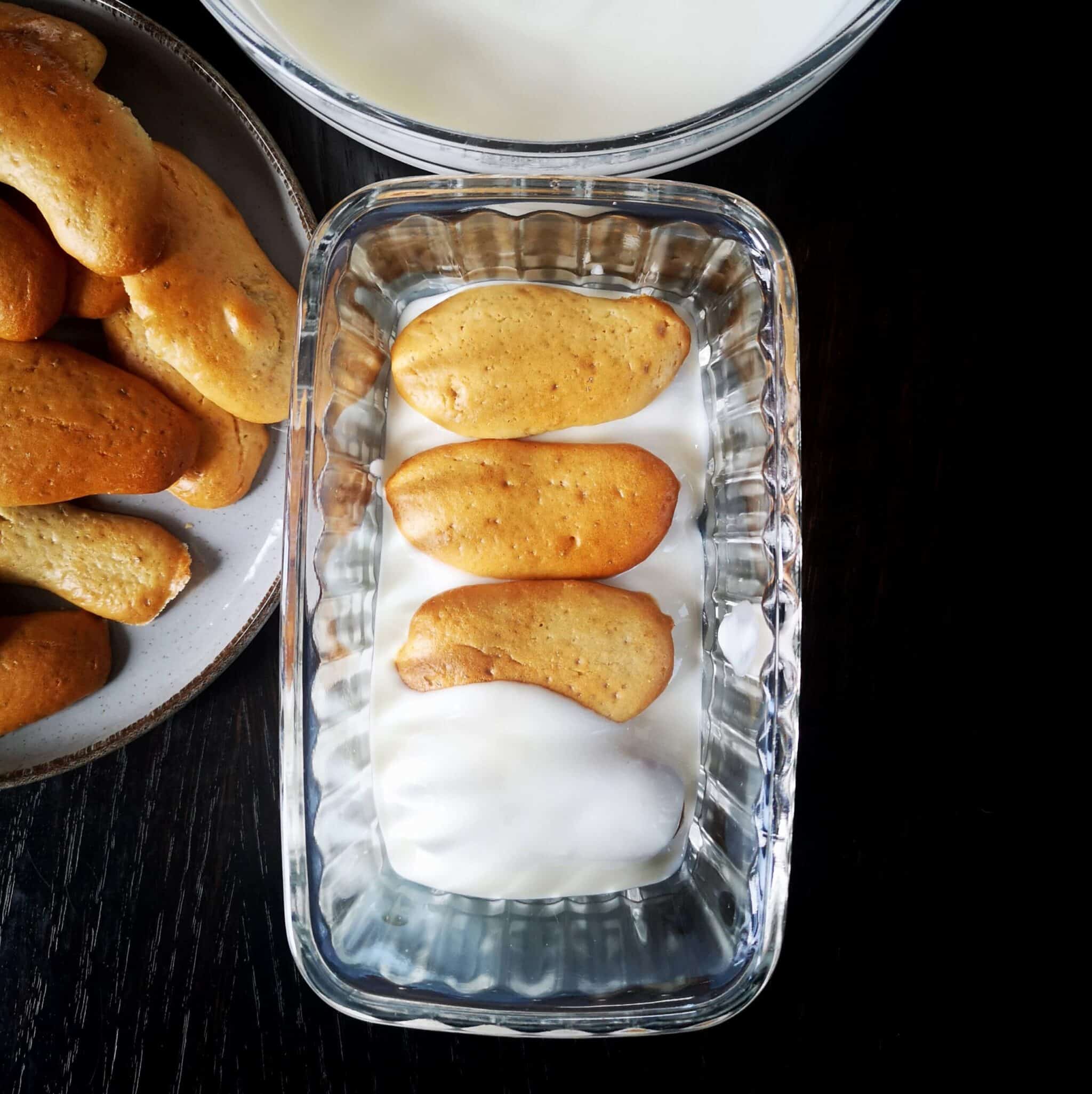 Моят вариант с козе кисело мляко 3,7% масленост хармонира прекрасно и овкусява и овлажнява бишкотите перфектно. Ако използвате по-гъст и високомаслен млечен продукт – маскарпоне, цедено мляко или скир – потопете предварително бишкотите в мляко или кафе, за да могат да омекнат.