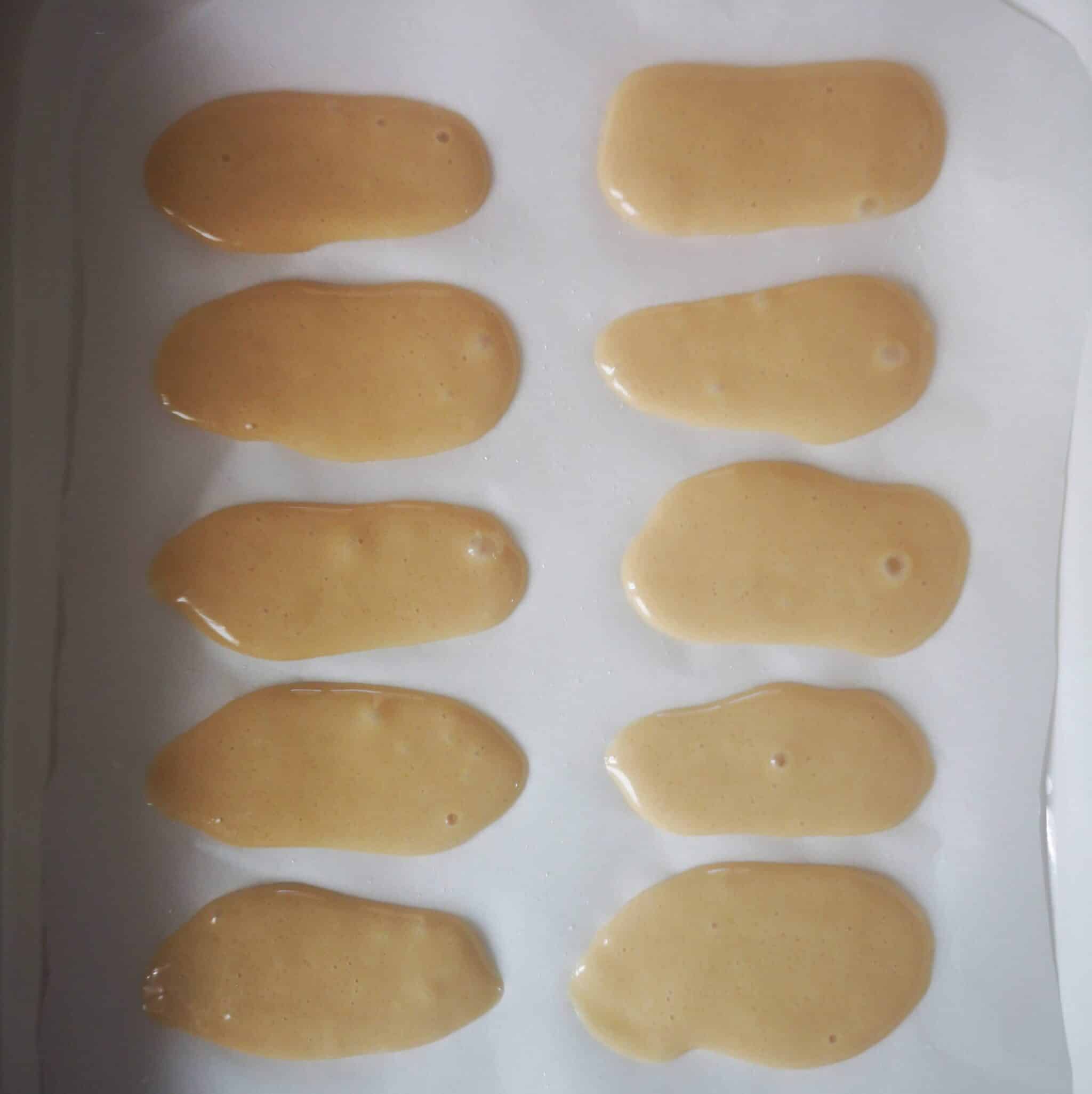 Разпределете "бишкотките" с лъжичка на сравнително еднаква дължина върху хартия за печене. От сместа ще може да оформите около 35-40 броя.