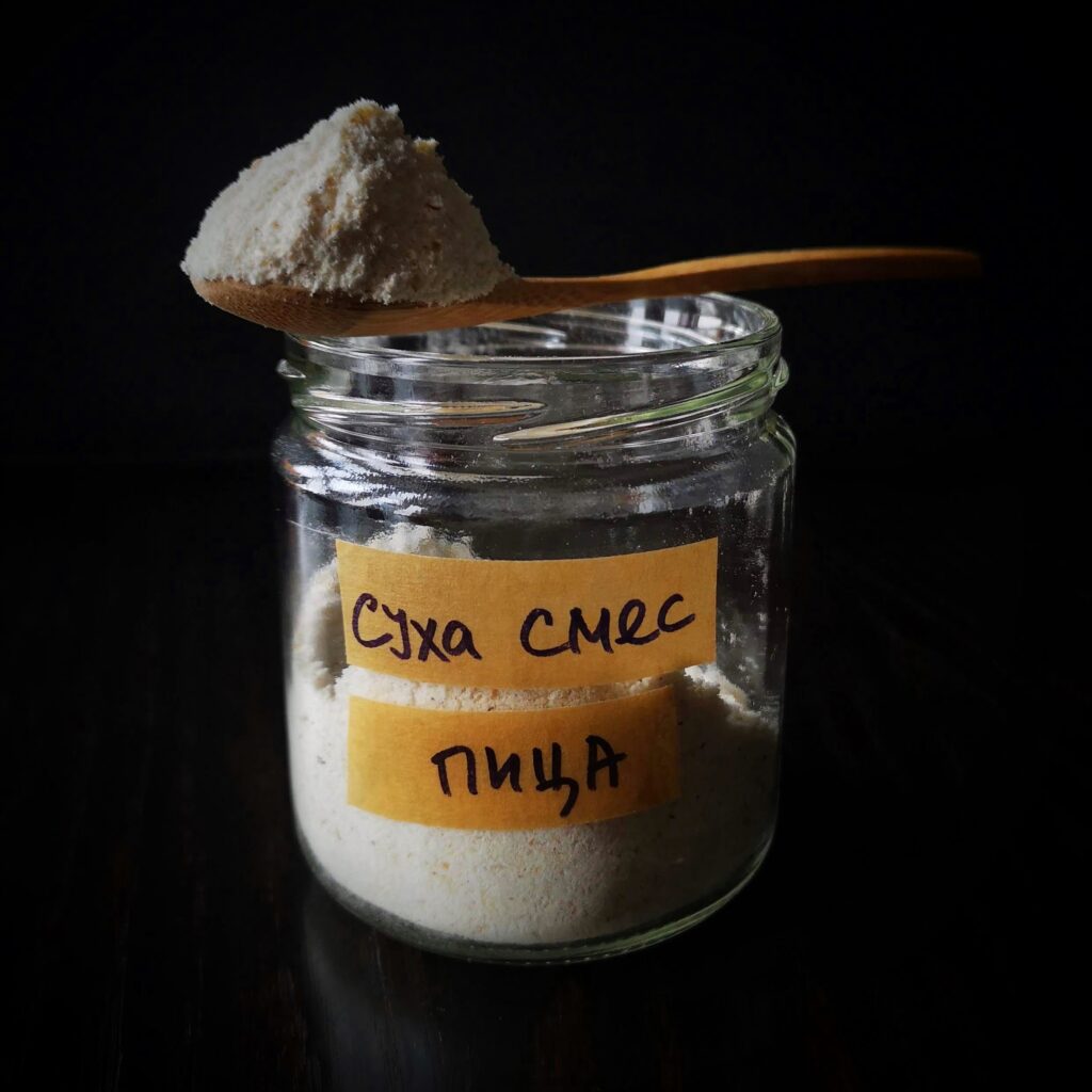 Улеснете се и спестете време, като си подготвите предварително буркан със суха смес за основата на пицата. А когато настъпи момент гарнирайте с продукти по желание.
