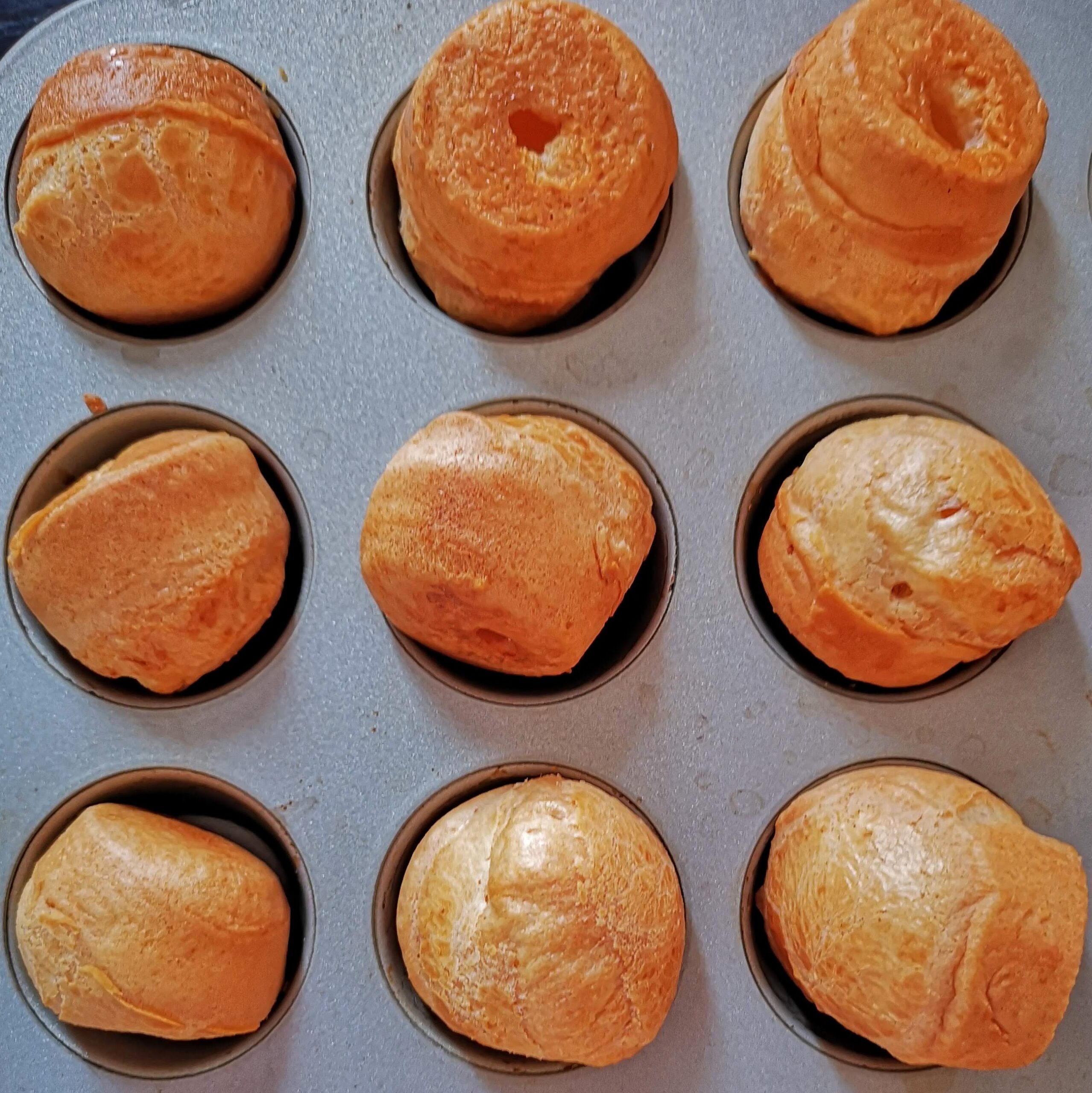 А те наистина са разкош! Нямах форми за мини мъфини и пекох в кошнички за обикновени. Направих двойна доза. Излязоха 15 броя. И… Свършиха за час.