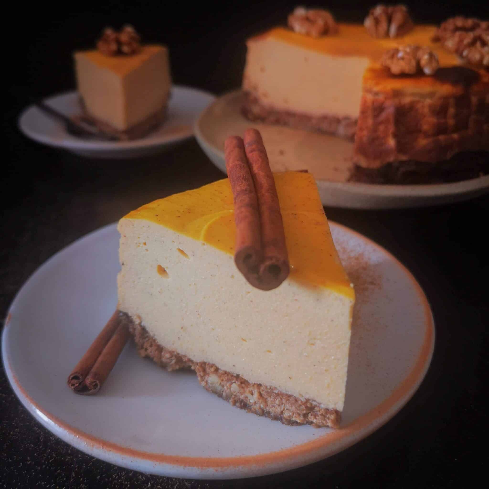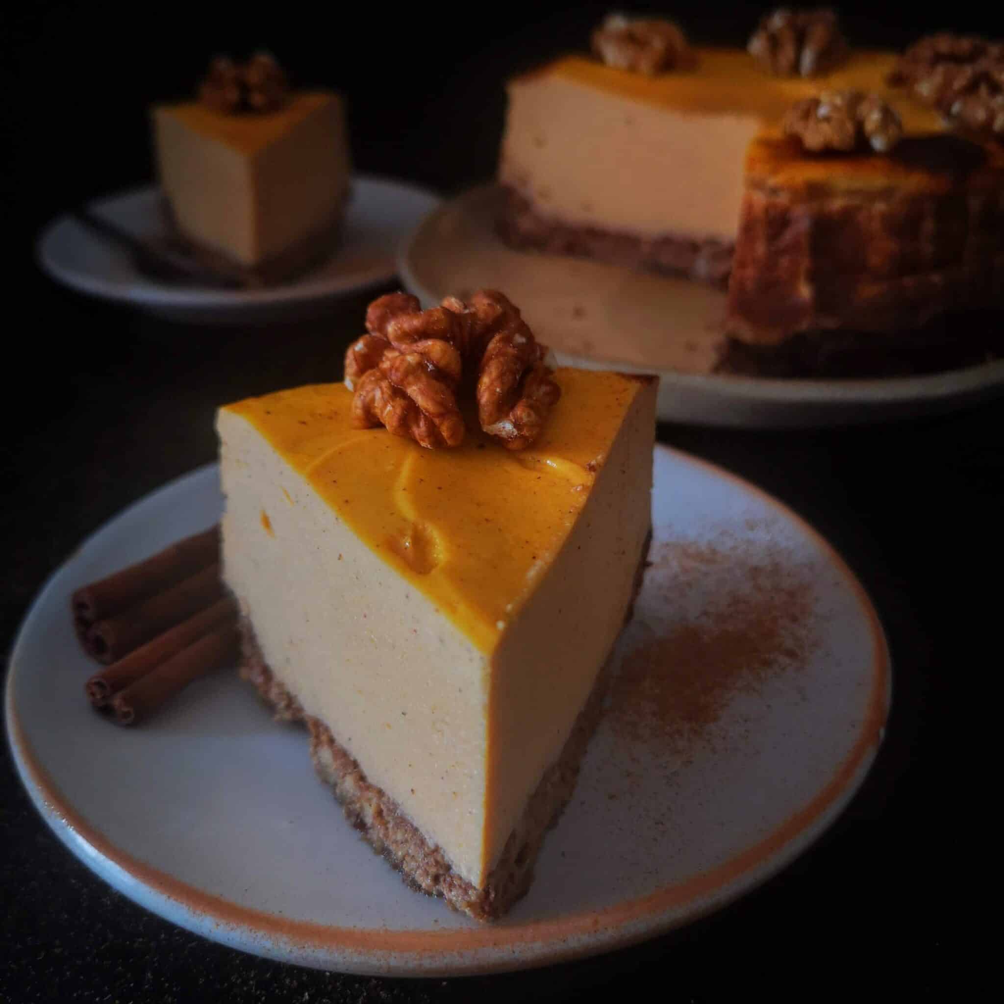 Класически вкусове – орехи, канела и тиква, въплътени в модерна рецепта за Чийзкейк с тиква.