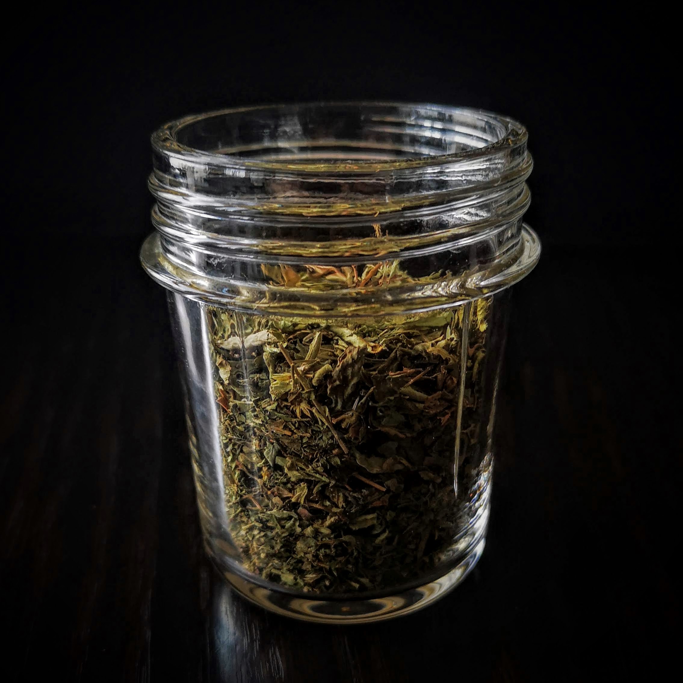 Подгответе сухи листа от стевия и ги натъпчете в малък стъклен буркан.10 г сухи листа от стевия