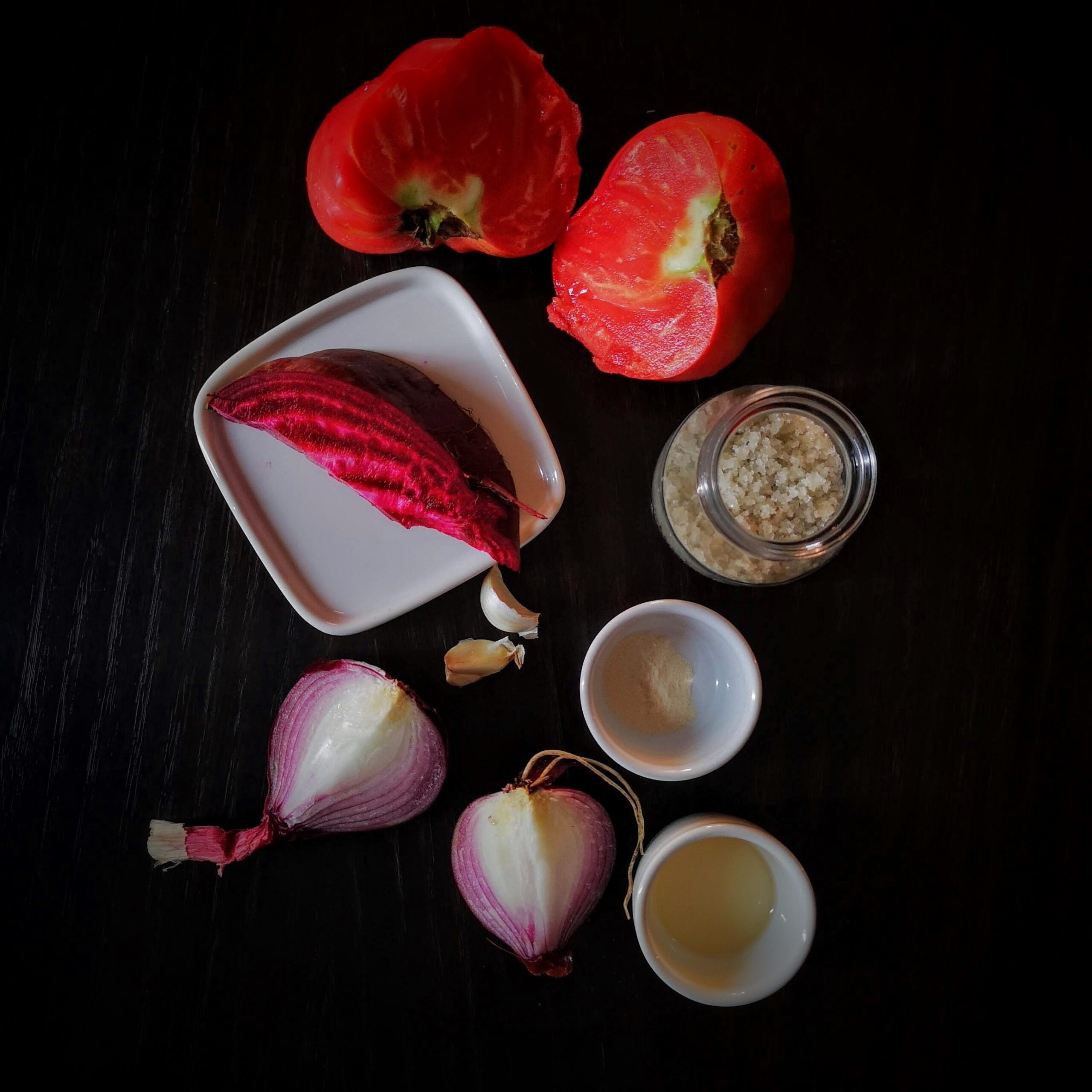 домати, цвекло, чесън, лук