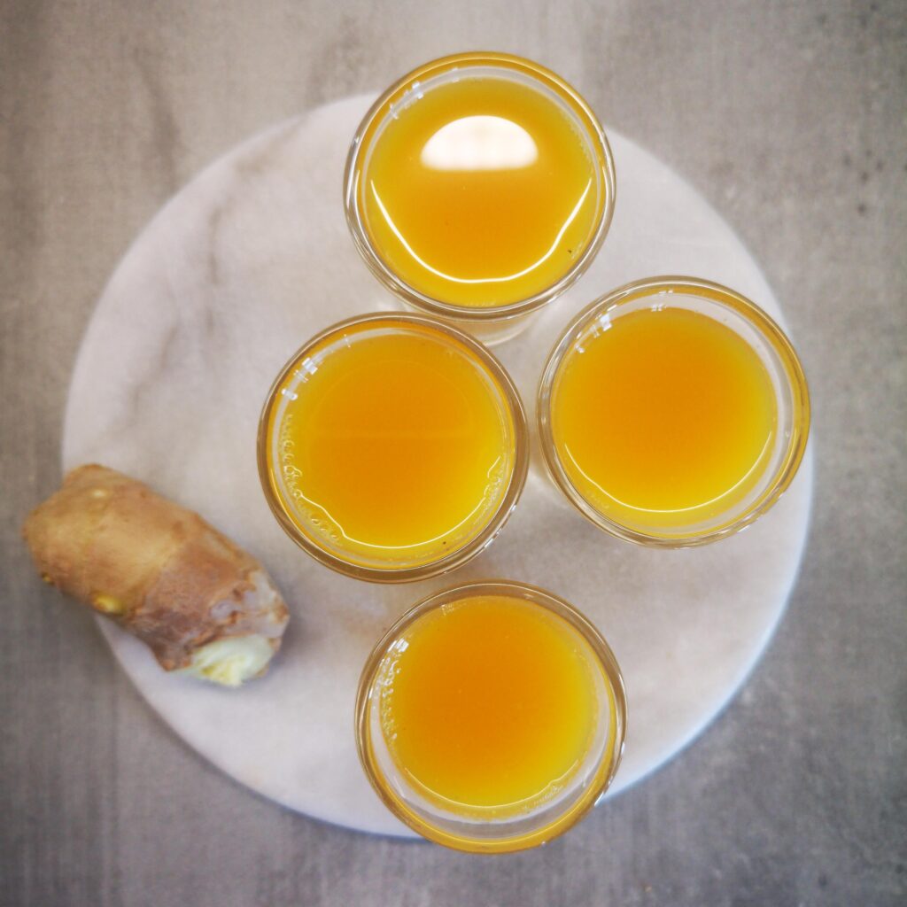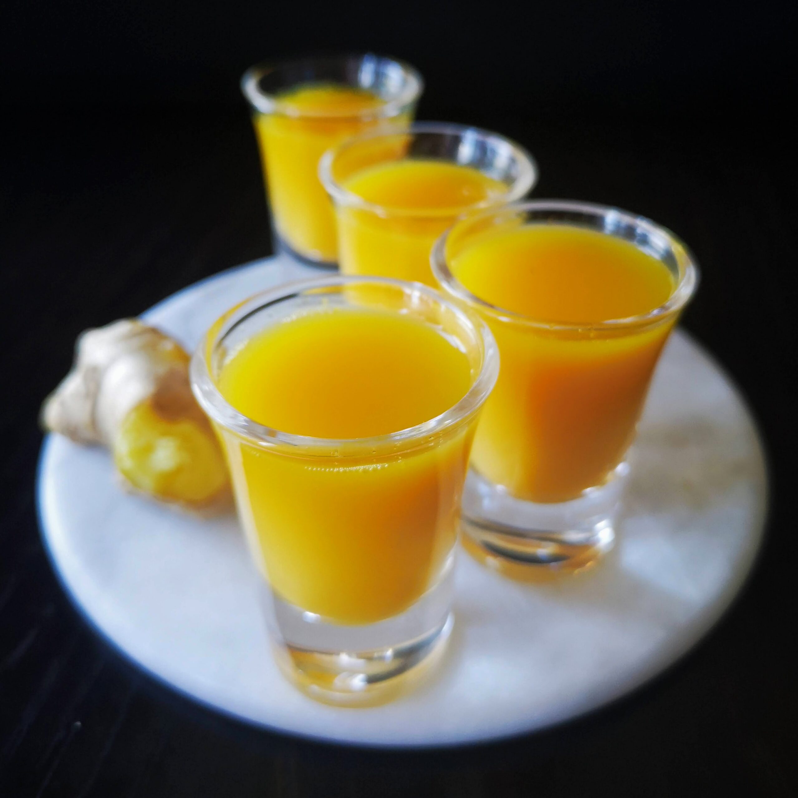 Изпълен с интензивен вкус, пресния джинджифилов шот е зареден с мощни антиоксиданти и хранителни вещества, които потенциално могат да помогнат за засилване на имунната система и намаляване на възпаленията. Също така ще подпомогне храносмилането, както и намаляване на нивата на кръвната захар.