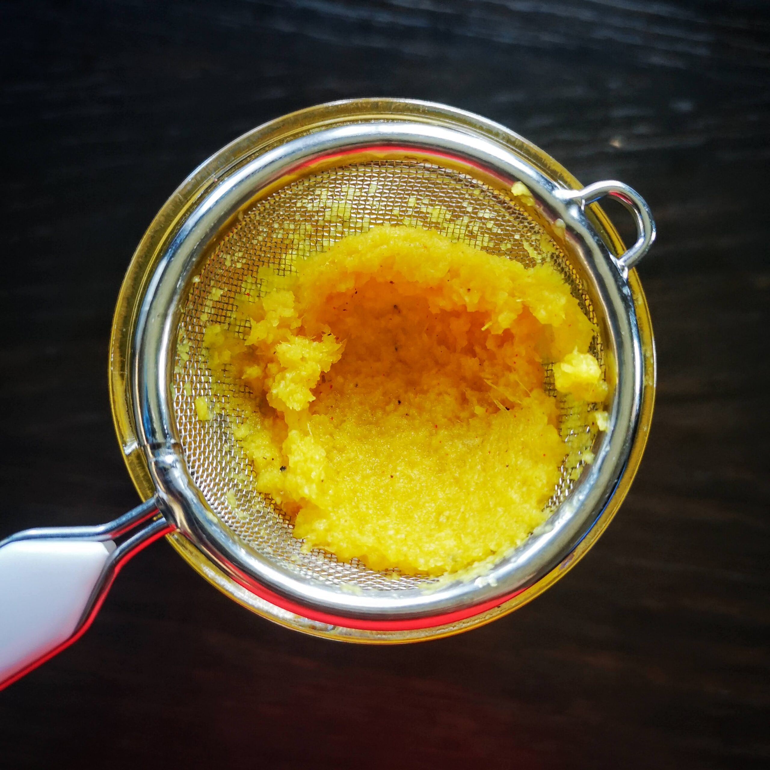 Относно пулпата остатък от шота – за мен влакнестата структура, която остава от джинджифила е твърде груба за влагане, за да може да бъде използвана в рецепта.