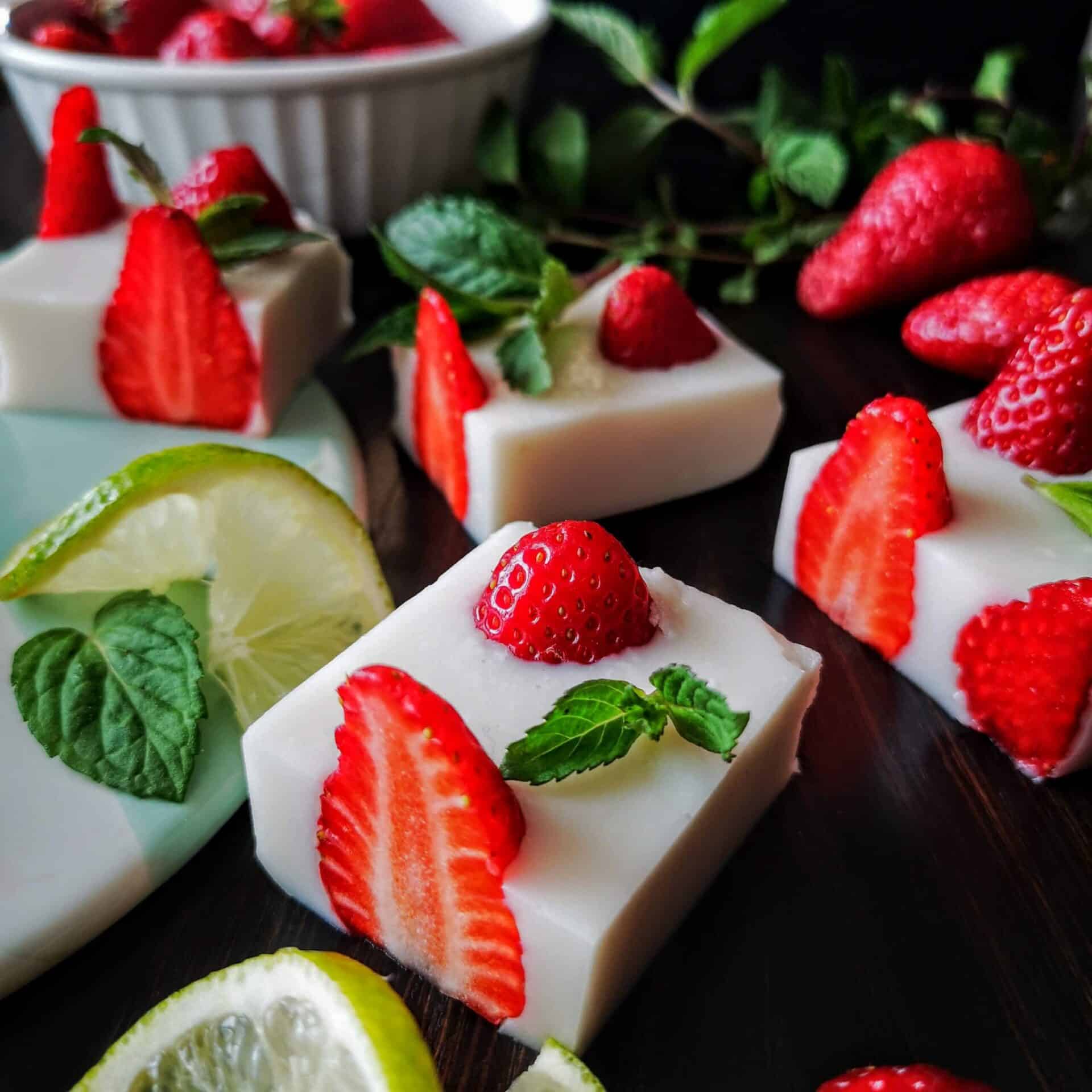 Как се приготвя приказно летен кокосов нисковъглехидратен десерт без глутен, яйце и лактоза, лек и ефирен, пълен с полезни мазнини? Това кокосово желе с ягоди е с минимум съставки. Приготвянето му е много лесно. Вкусът му носи нотка екзотичност. Експерименти с различни плодове са възможни.