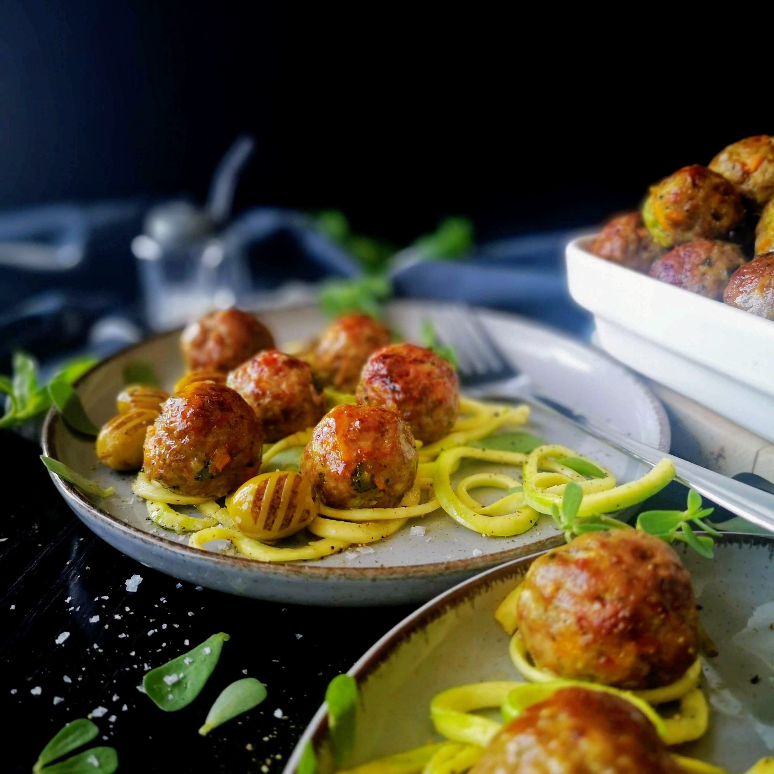 Печете около 20-25 минути и обърквайте периодично за да се запекат кюфтенцата от всички страни и запазят кръглата си форма.