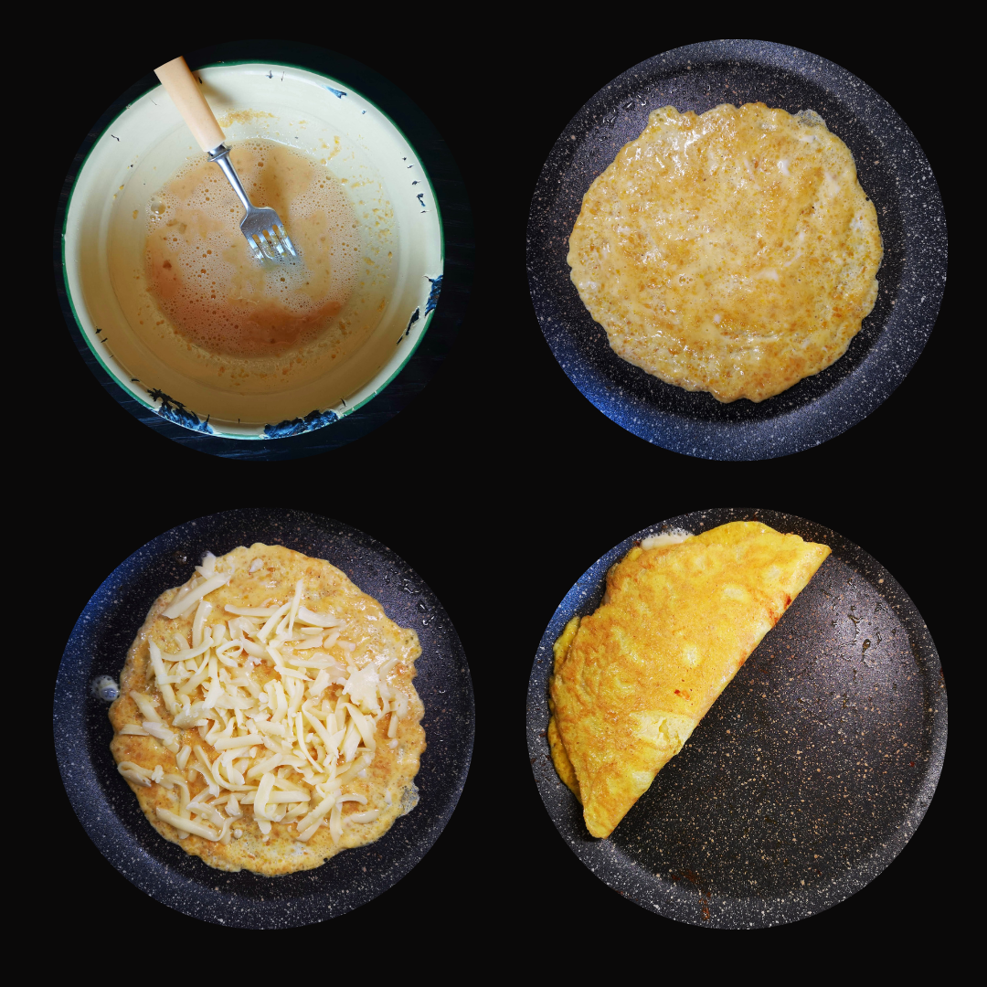 1. За всеки брой палачинка разбийте 1 яйце с 10 г с лененето семе и 1 с.л. вода.2. Изпечете палачинка едностранно на тиган в леко намаслен тиган с гхи.3. Равномерно поръсете около 40 г настърган кашкавал върху палачинката, както е в тигана.2. Прегънете на две. Запечете палачинката докато придобие леко хрупкава коричка и кашкавала се разтопи.5 бр. яйца, 50 г златно ленено семе, 5 с. л. вода, 200 г биволски кашкавал, 10 г гхи за намазване на тигана