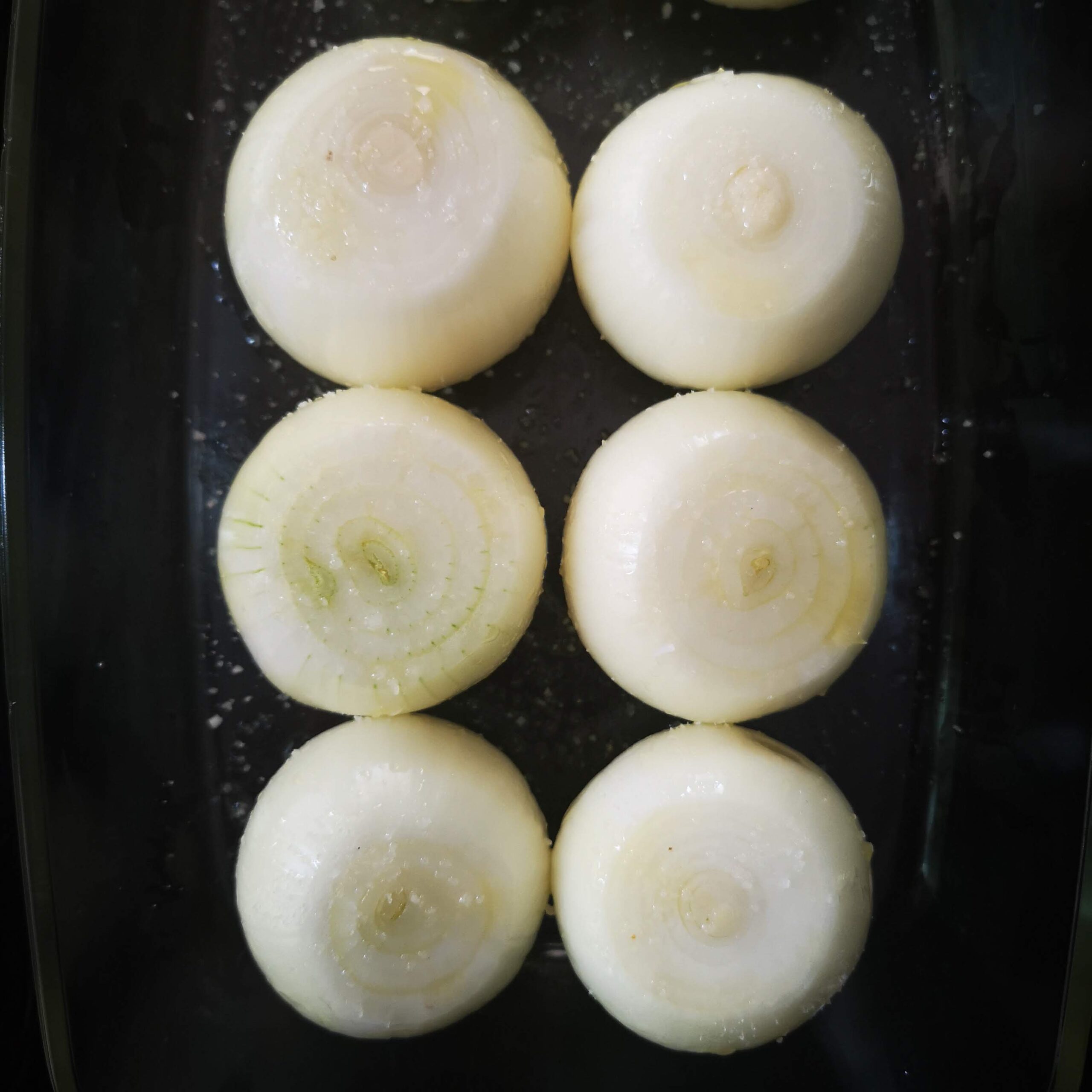 Избирайте среден по големина лук, с кръгла форма и еднакъв размер за тази рецепта. Забележете времето на изпичане на лука, колкото по-големи са главите, увеличавайте времето за първоначално печене.