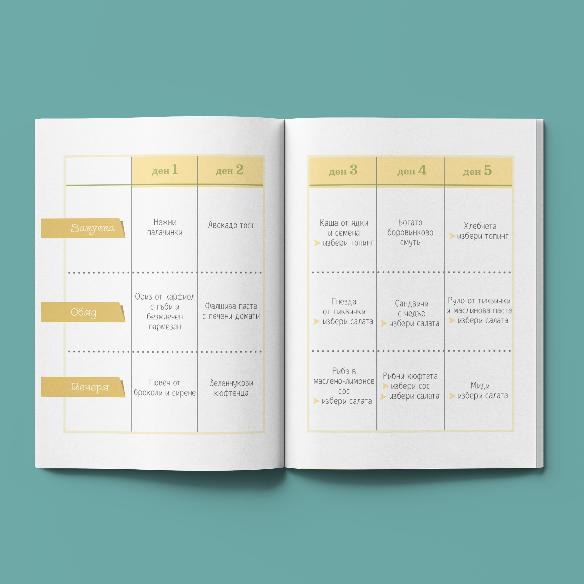 Нисковъглехидратно меню Без месо е организация, планиране и идеи за вкусна храна. Освен всичко това се побира в джоба или дамската чанта, затова може винаги и навсякъде да бъде с вас.