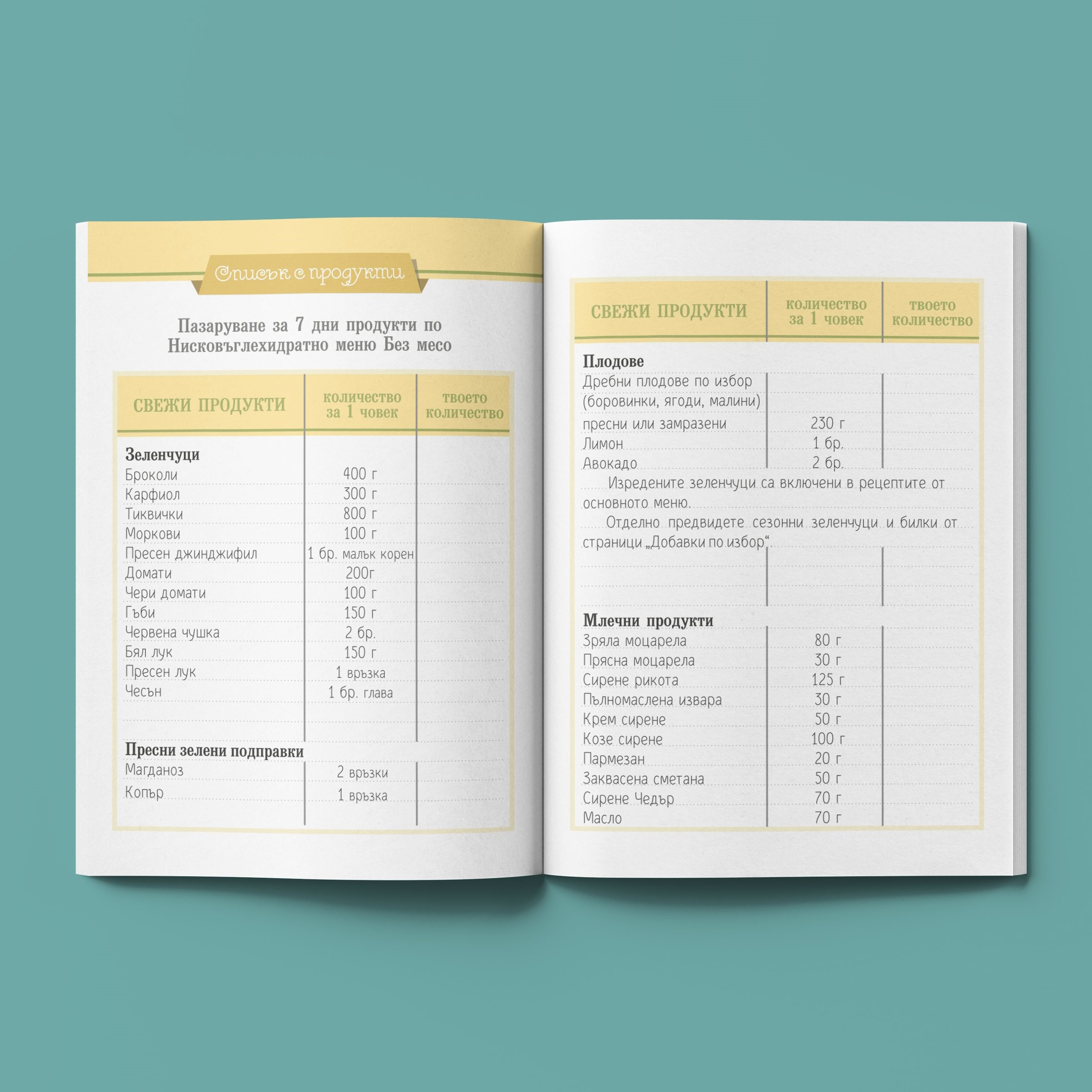 Нисковъглехидратно меню – четири варианта – Класик , Без месо , Свежо и зелено и Без лактоза . Лесни рецепти с наистина достъпни продукти и без полуфабрикати. Нисковъглехидратно меню е организация, планиране и идеи за вкусна храна. Освен всичко това се побира в джоба или дамската чанта, затова може винаги и навсякъде да бъде с вас.