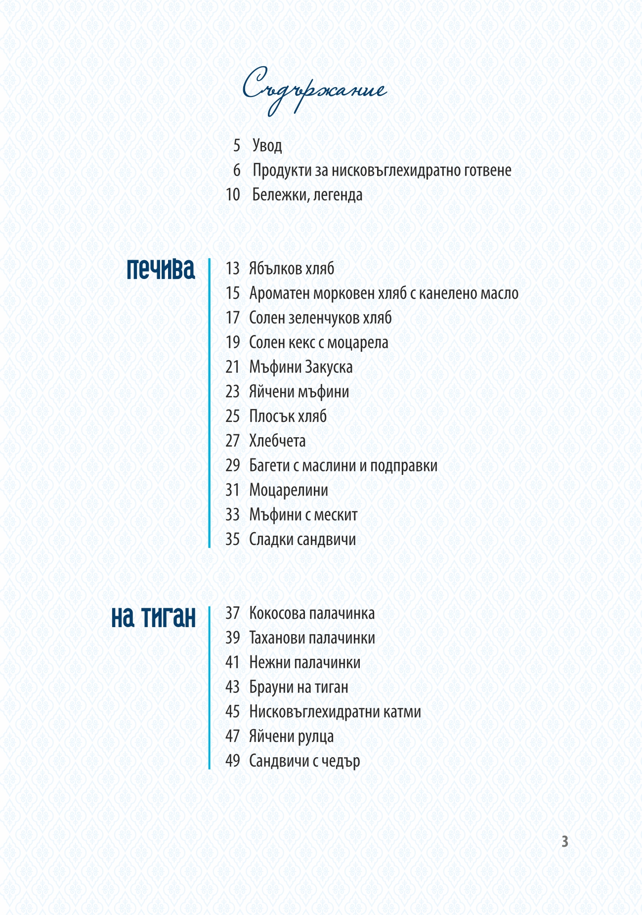 - Включено е обобщение с най-използваните продукти за нисковъглехидратни рецепти и информация за тях.