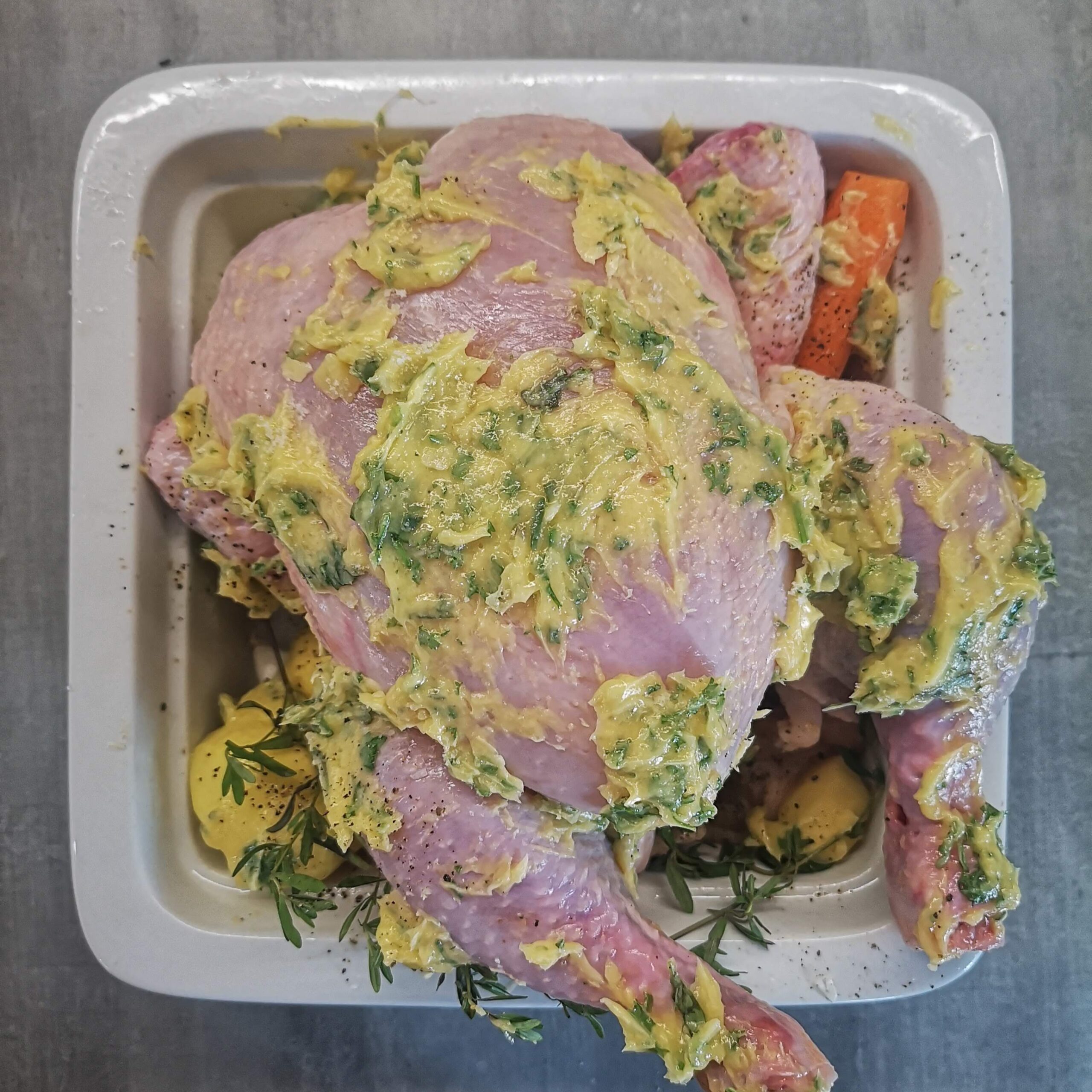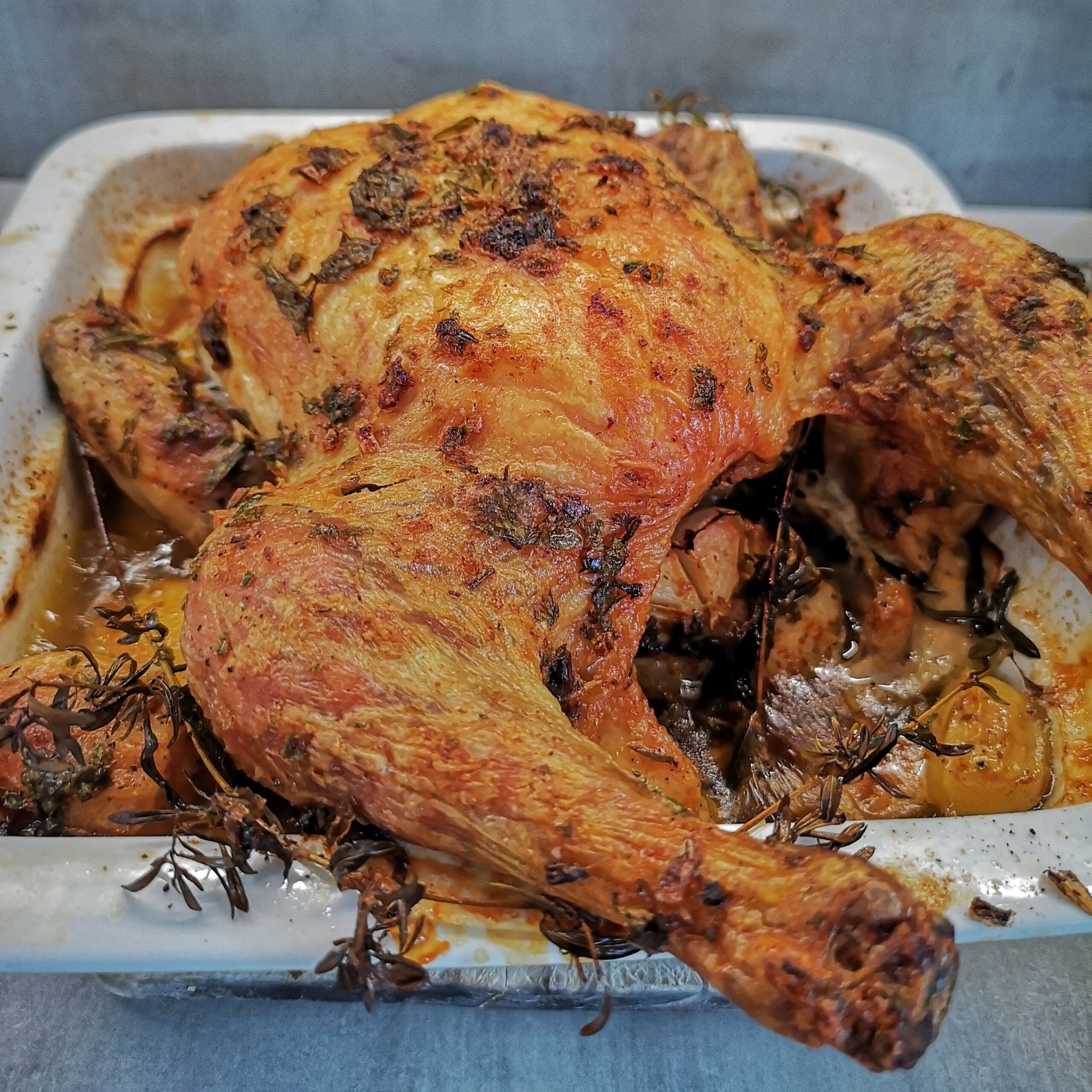 Цяло печено пиле с билкова коричка