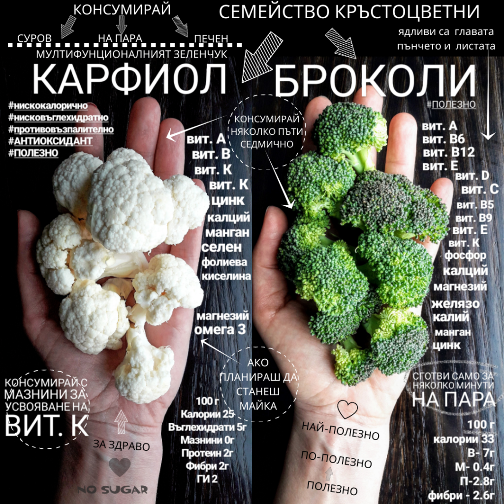 В нисковъглехидратната кухня печивата не стават бухнати и меки, козунаците не са на конци, курабийките не са посипани с хрупкава захар, картофките не са с хрупкава печена коричка (дори въобще няма картофки)….но зеленчуците! Ах! Те са перлата в короната, акцента на масата, модерният поглед към добрата храна. Дори смятам, че от всички зеленчуци карфиолът е този, който е най-употребяван в рецепти, които се цели избягване на въглехидратите.