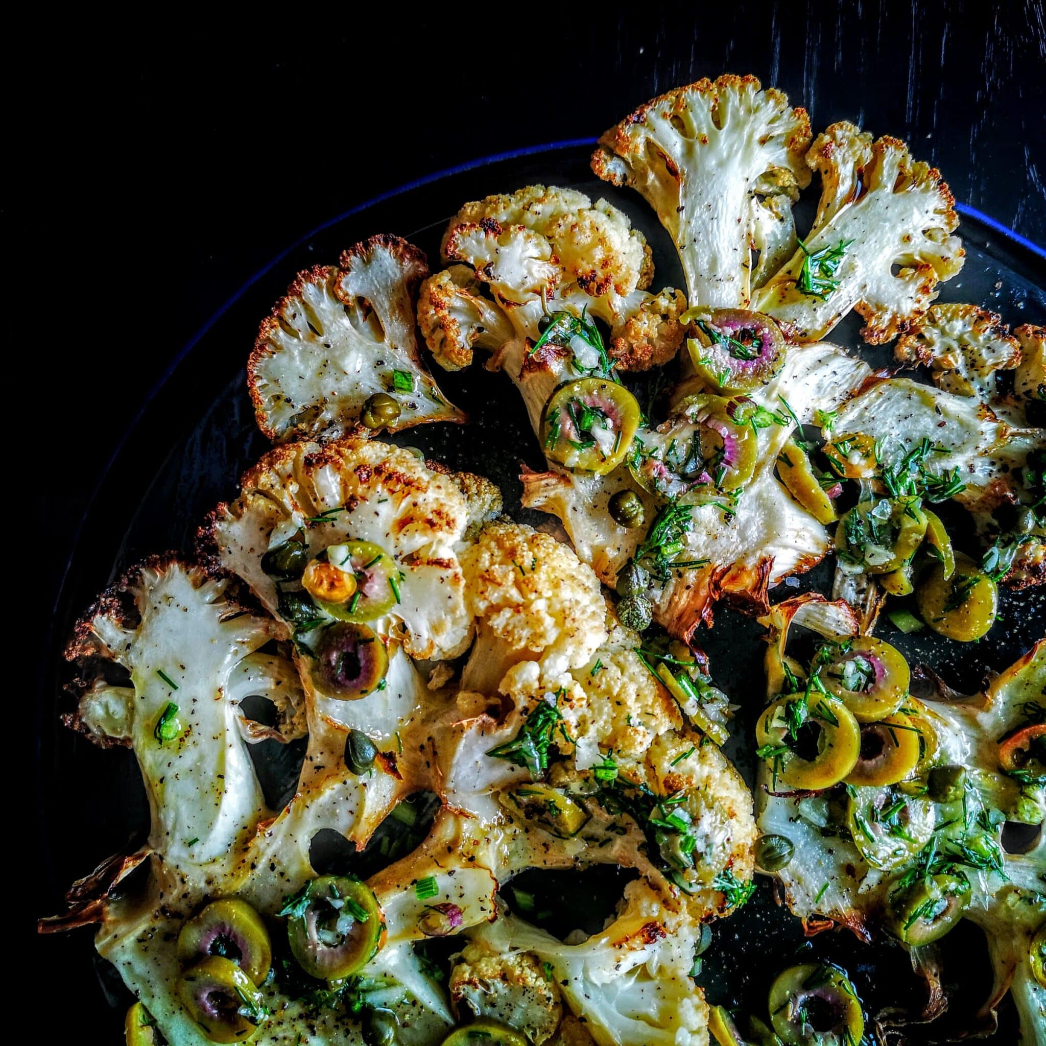Разпределете маслиновата салца при поднасяне върху изпечените карфиолени стекове. Консумирайте ястието с еднакъв успех топло или студено.
