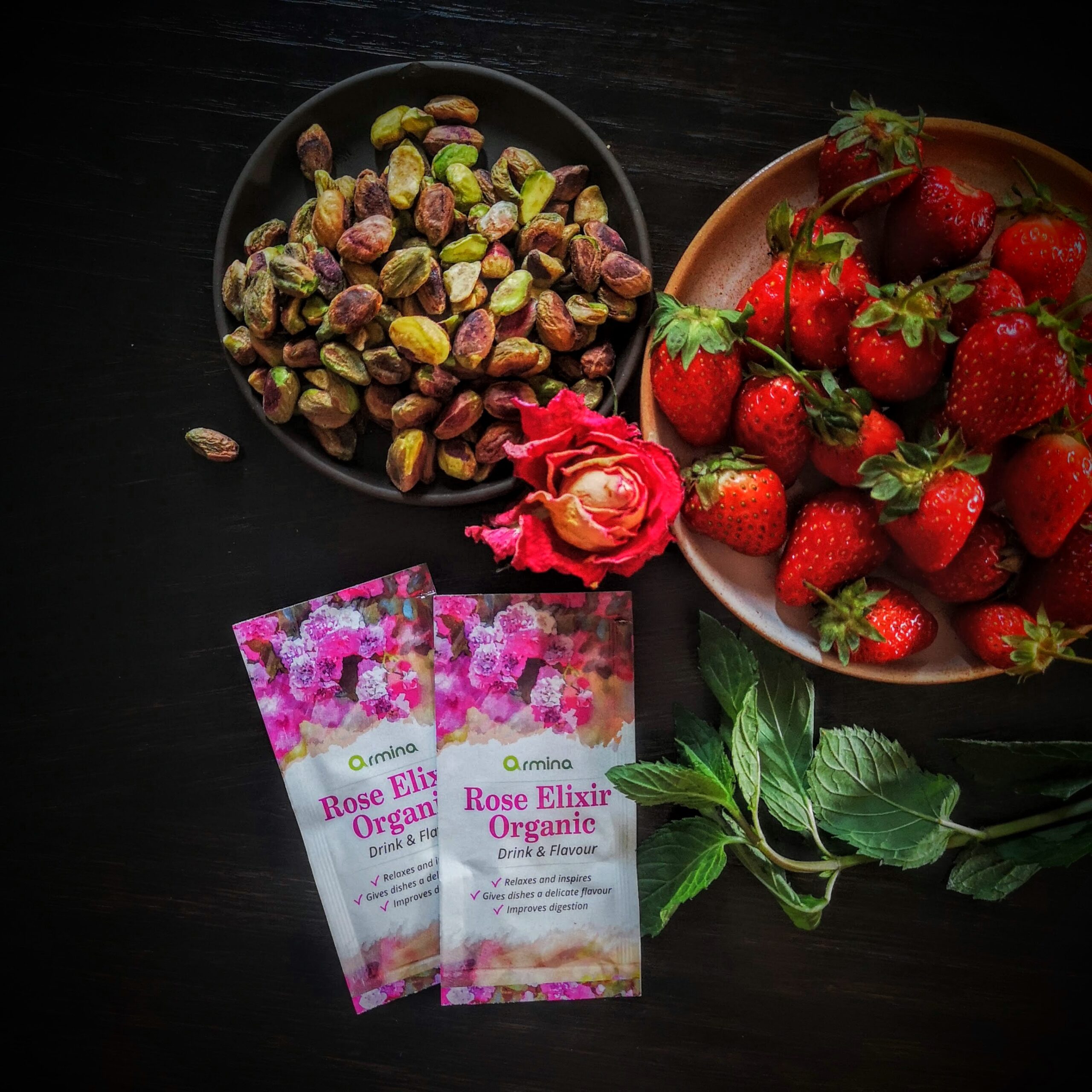 Не са нужни много продукти и инвестиране във време за приготвяне на разкошен лек десерт с ягоди. Само малко свежи плодове, хубави продукти и акцент – розова вода. Също само 10 минути подготовка и малко търпение за охлаждане.